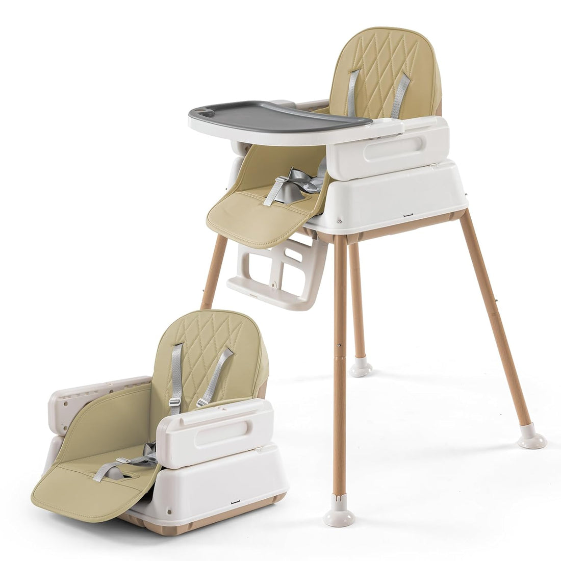 3 in 1 Adjustable Convertible Baby High Chairs for Babies and Toddlers,Khaki
